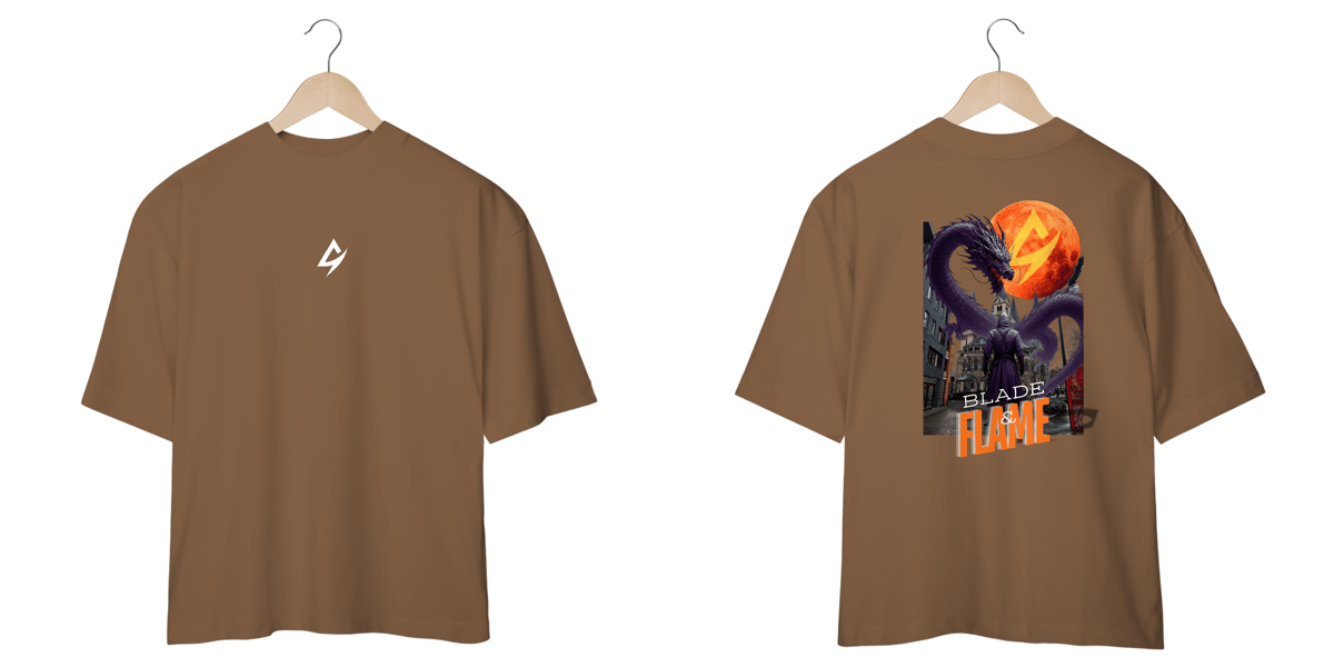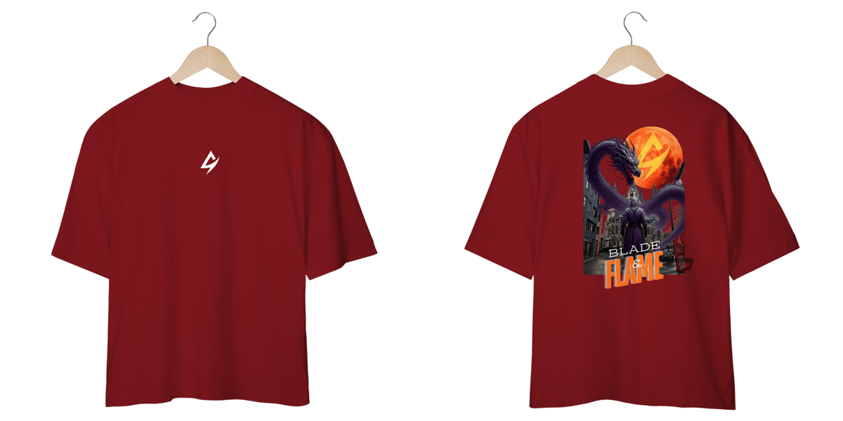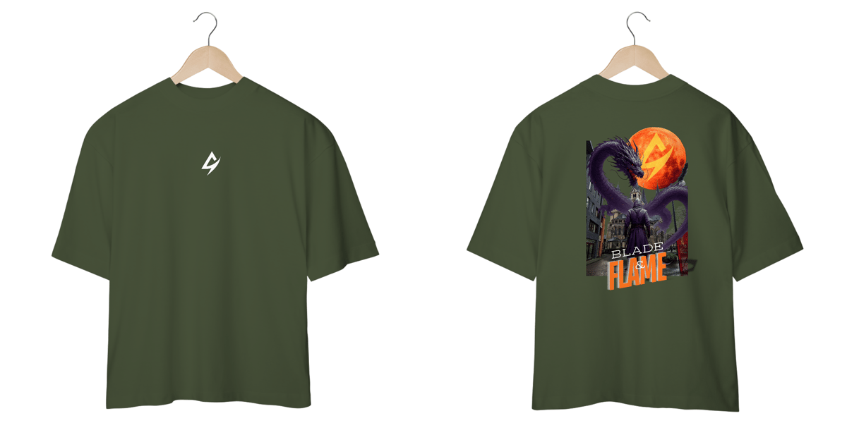 Com estampa detalhada nas costas e logo discreto na parte frontal, a Blade & Flame se destaca pelo contraste entre arte e minimalismo.